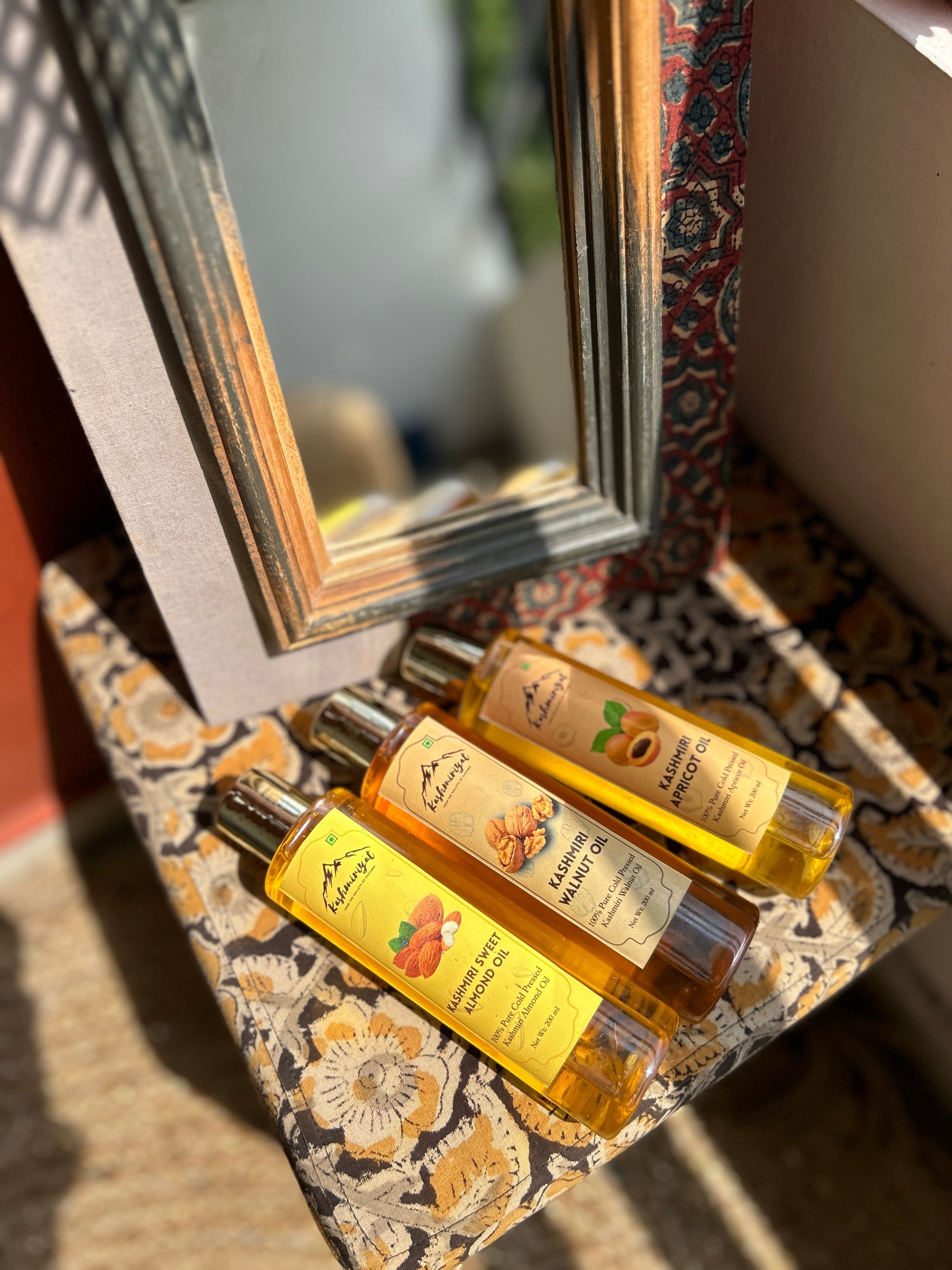 Elevate your skincare routine with our Authentic Kashmiri Apricot Oil, sourced from the pristine orchards of Kashmir. This cold-pressed elixir, packed with vitamins and antioxidants, provides deep hydration and rejuvenation for your skin. Suitable for all skin types, our chemical-free formula invites you to rediscover the beauty secrets of Kashmir.