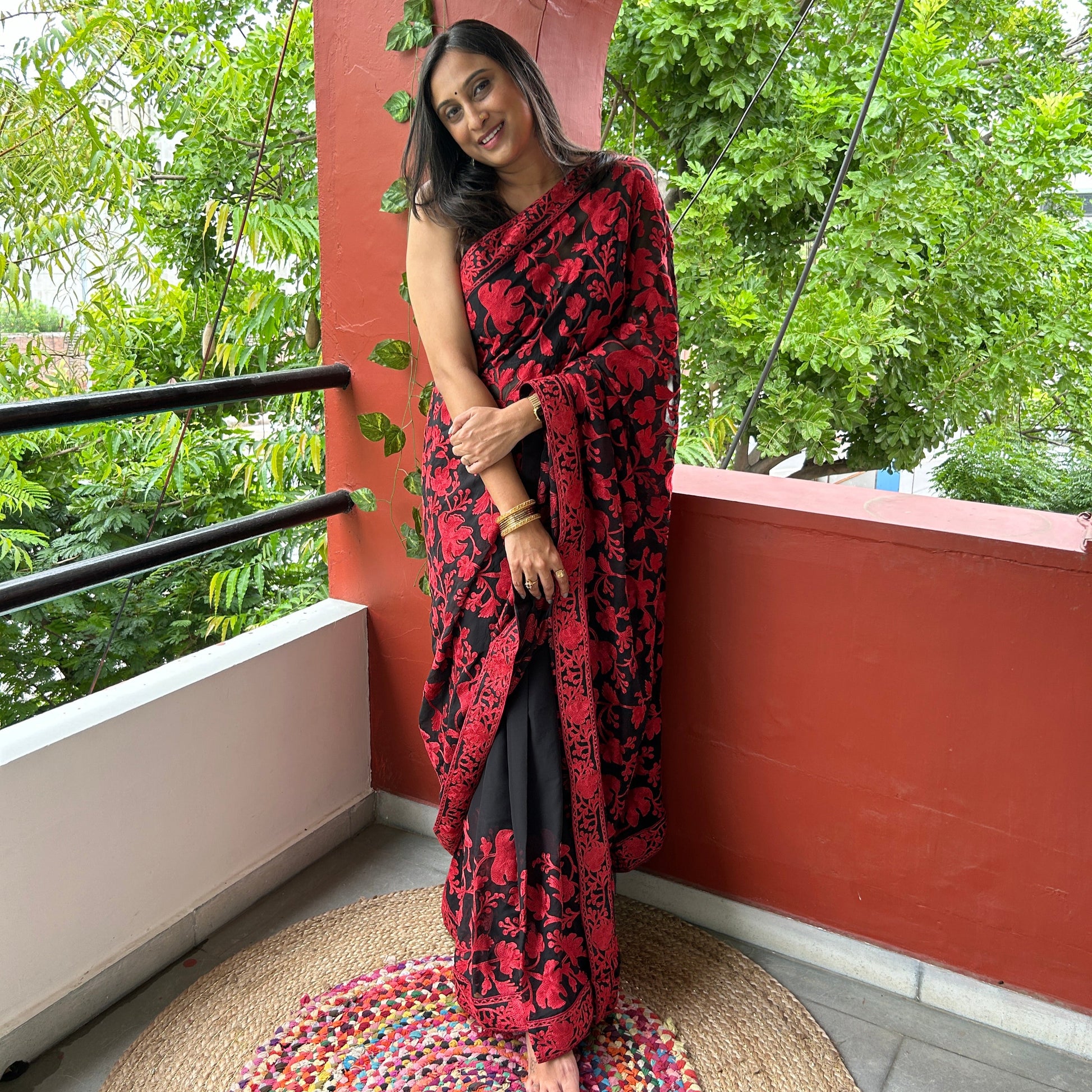 Introducing the epitome of elegance – our Kashmiri Aari Work Georgette Sari Collection!