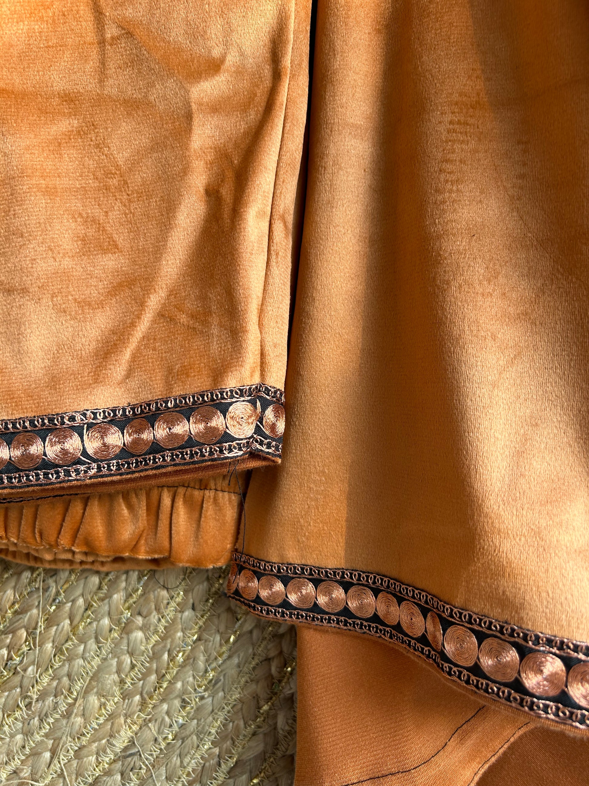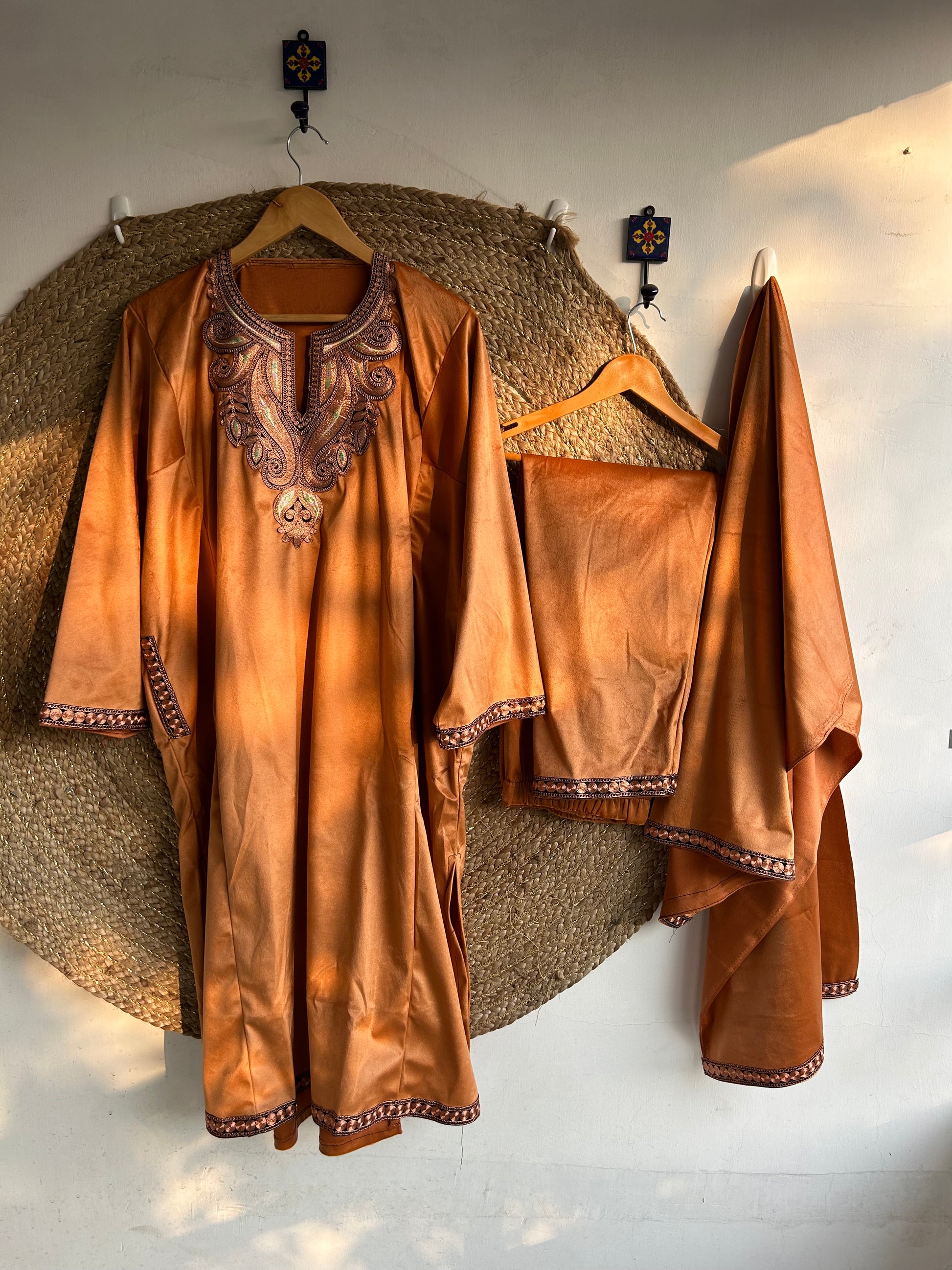 These full suits are super soft and cozy, made with premium quality velvet material adorned with pretty Aari embroidery. They're like a blend of tradition and modern style – perfect for any occasion, whether it's a special party or pre wedding occasions.