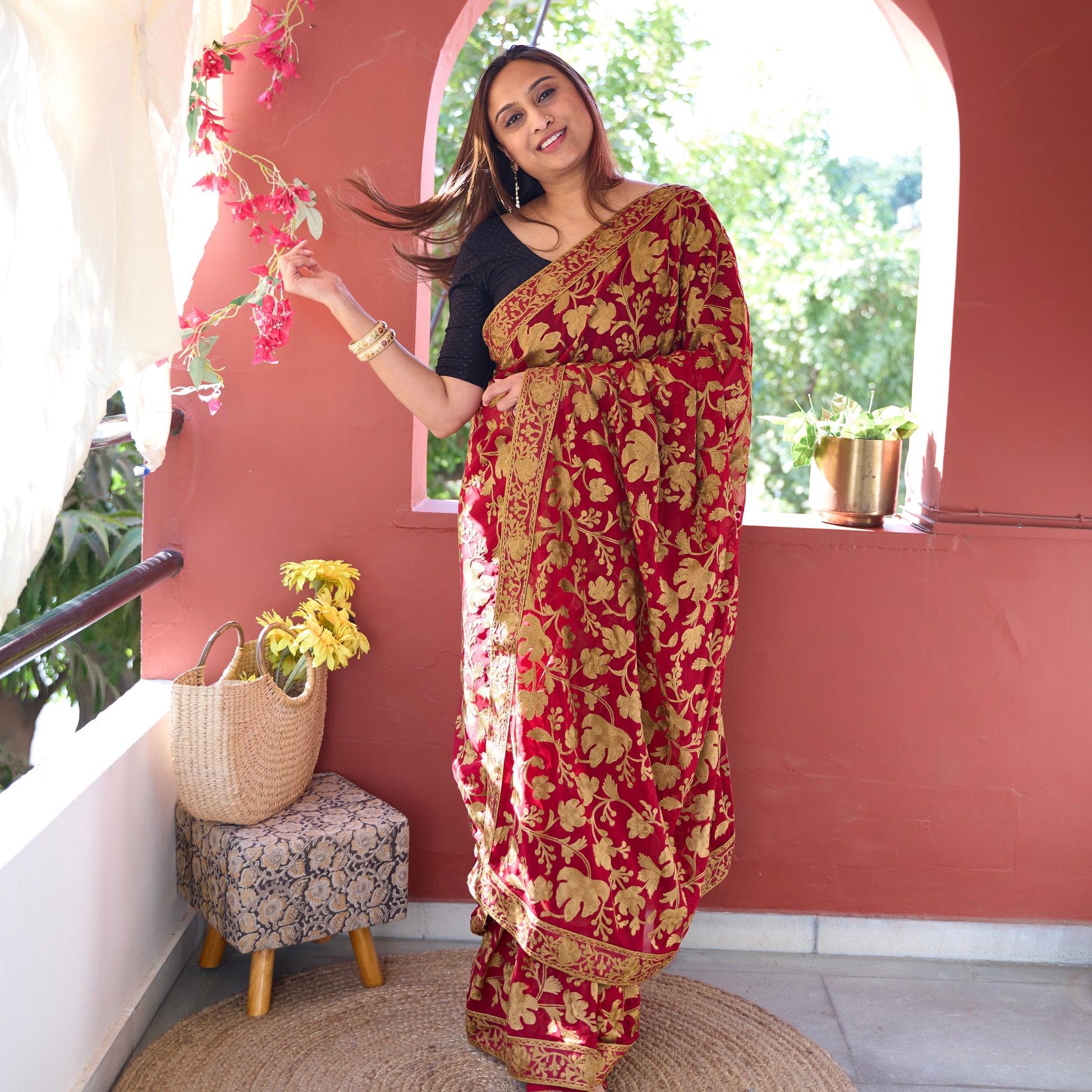 Introducing the epitome of elegance – our Kashmiri Aari Work Georgette Sarees!
