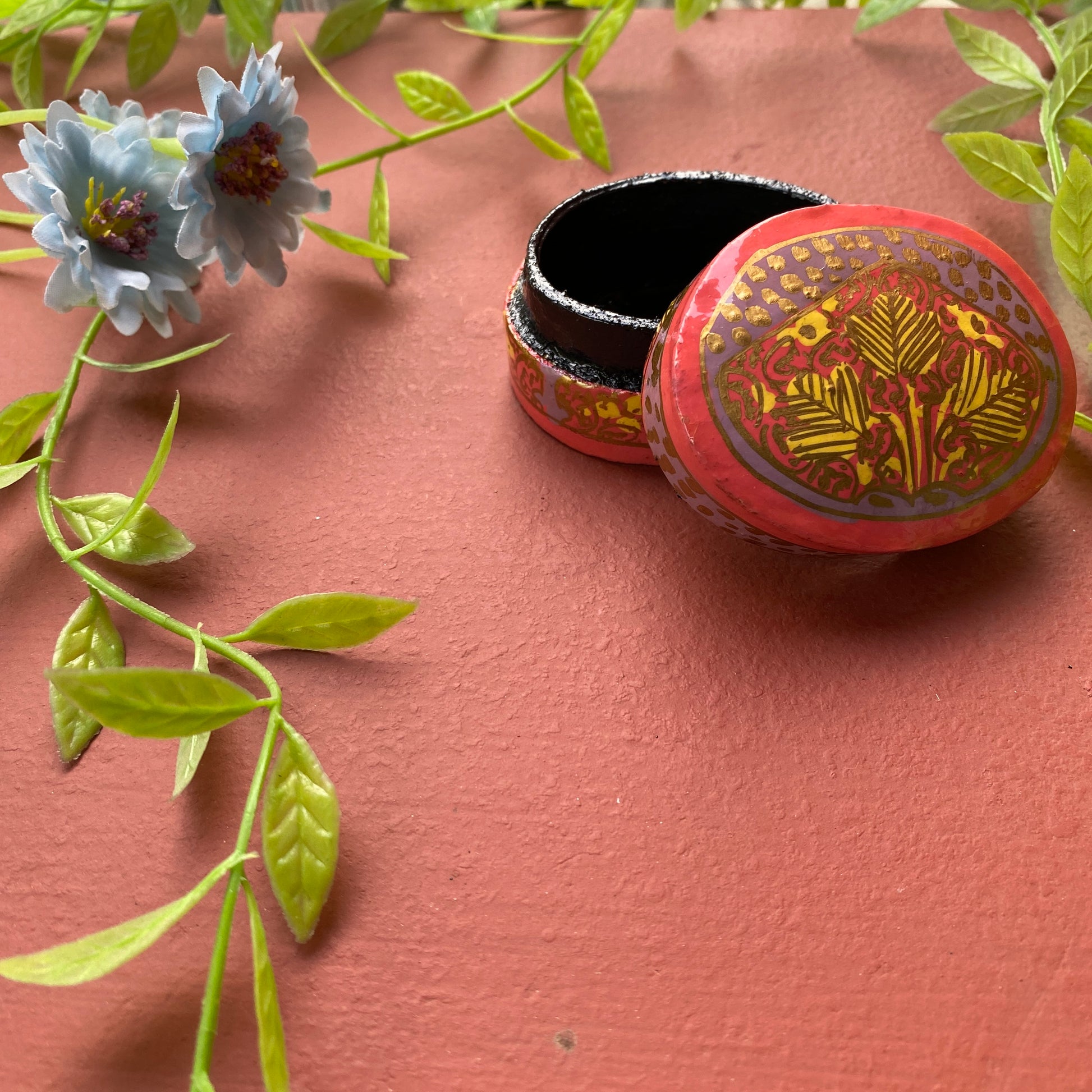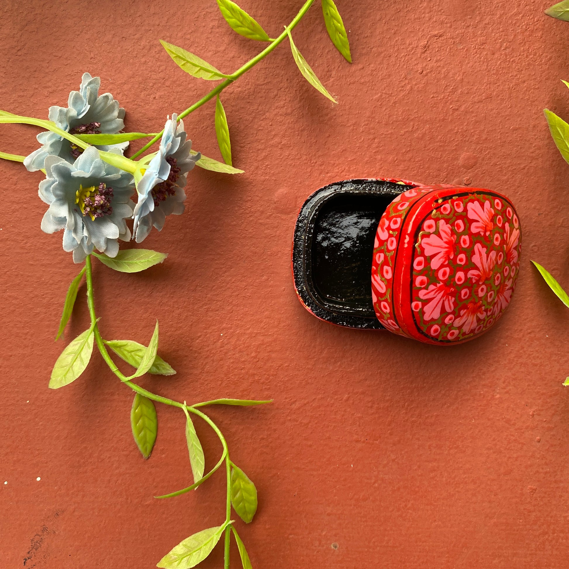 Experience the exquisite artistry of Kashmiri artisans with our small Papier mache boxes. Paper Mache - the craft - where the waste paper is moulded and given a particular shape to create this beautiful box, which can be used or gifted to the ones you love the most. Later it is passed on to an artisan, who paints over the paper.