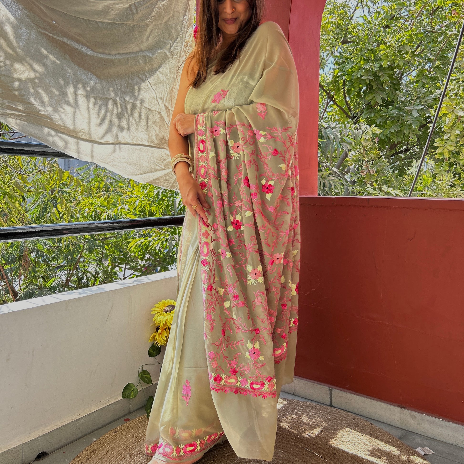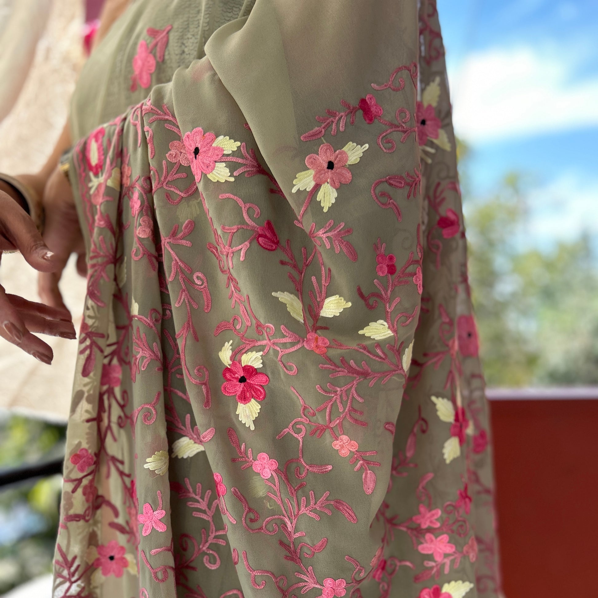 Introducing the epitome of elegance – our Kashmiri Aari Work Georgette Sarees!
