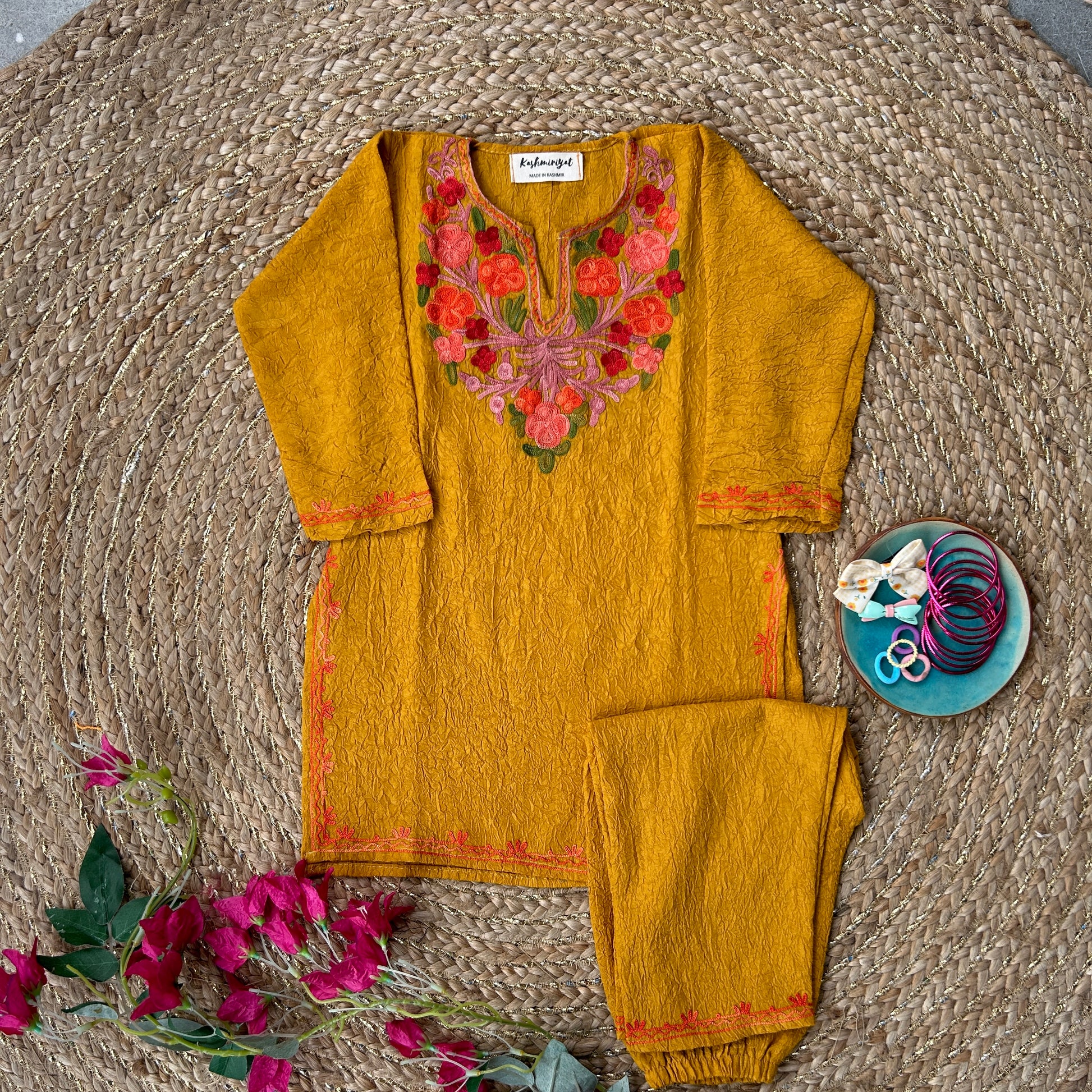 Mustard Kashmiri Kids Kurti Set (3-5y)