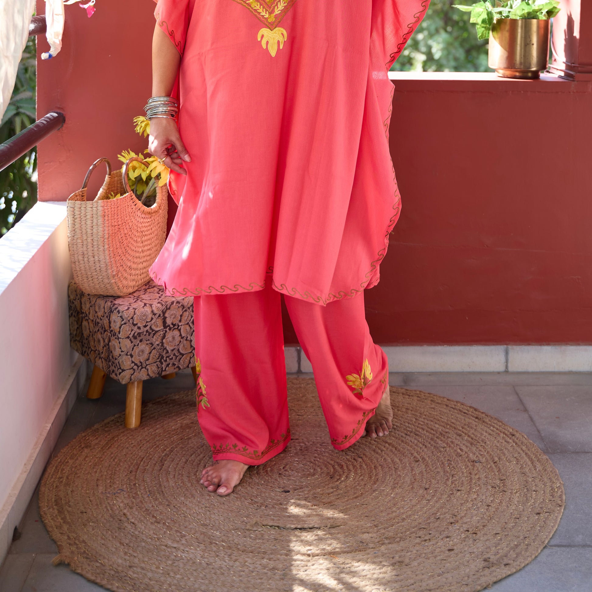 Pink Cotton Kaftan Co-Ord Set